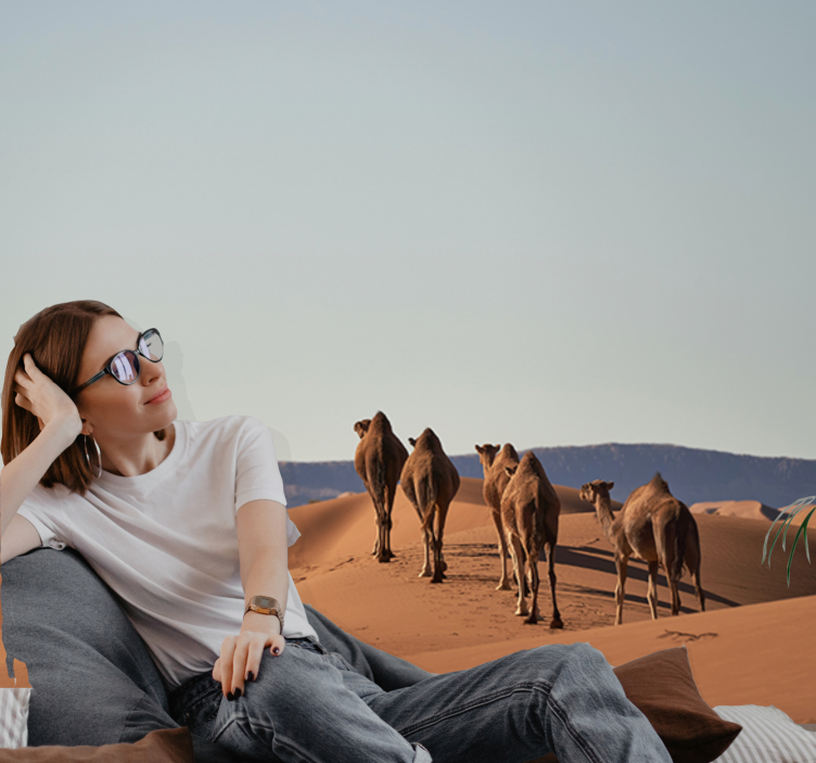 Uživajte u čarobnom dizajnu naših Foto tapeta pustinja kamile u pustinji koje donose duh pustinjske oaze u vaš dom. Ove tapete prikazuju veličanstvene deve kako se kreću kroz pješčane dine, stvarajući savršeni krajolik prirode koji će vas svaki put očarati. Sa svojom paletom mat boja, ove tapete osiguravaju da vaša unutrašnjost izgleda elegantno i moderno, dok istovremeno unosi dašak egzotike i avanture u svaki prostor.