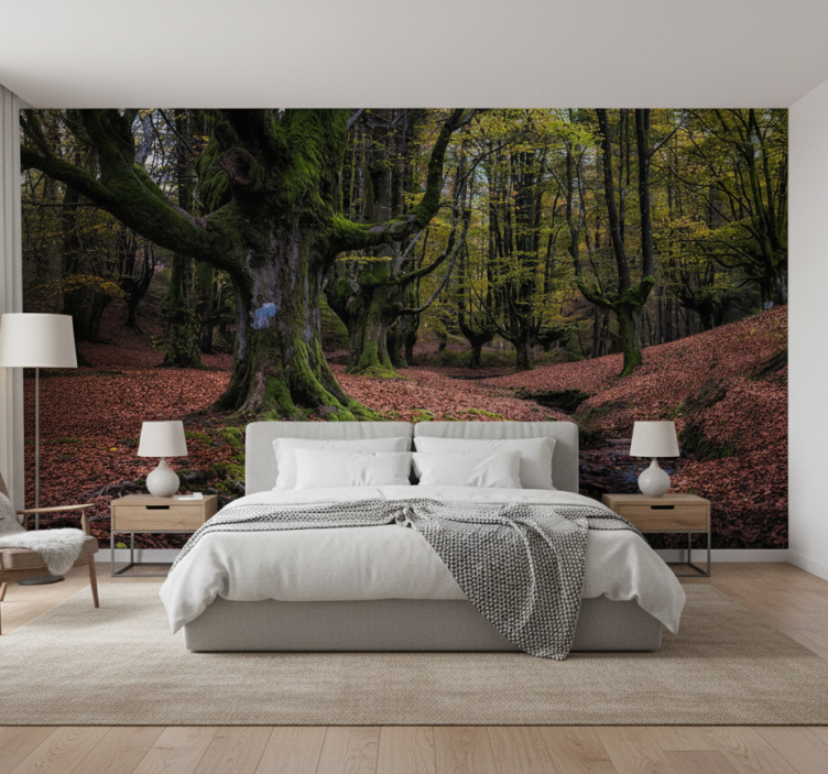 Referenca: F11926Uživajte u ljepoti prirode s našim Foto tapetama šumski Čarobna jesenska šuma. Ovaj jedinstveni dizajn obogaćen je mat bojama, stvarajući osjećaj dubine i harmonije u svakom prostoru. Umjetnički prikaz šumske jeseni s bogatim nijansama drveća i lišća donosi toplinu i udobnost u vaš dom, dok materijal od netkane fototapete osigurava dugotrajnost i jednostavnu primjenu.