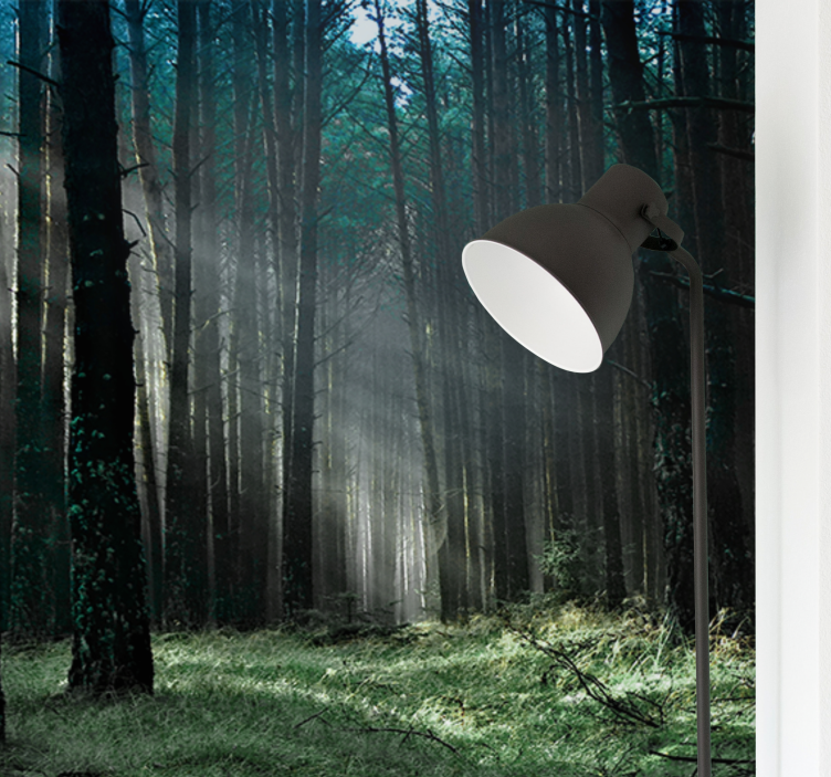 Referenca: F12248Mirna šumska scena s visokim drvećem kroz koje sunčeva svjetlost prolazi kroz grane, bacajući meke zrake svjetlosti na tlo. Bogata zelena podloga upotpunjuje prirodnu ljepotu šume, stvarajući mirnu atmosferu.