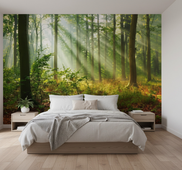 Referenca: F11924Uživajte u predivnom dizajnu našeg Foto tapeta šumski sunčani jutarnji gaj, koji donosi svježinu i harmoniju prirode u vaš prostor. Ova fototapeta prikazuje prekrasne mat boje šumskog okruženja, stvarajući osjećaj kao da se nalazite u mirnom jutarnjem gaju. Izrađena od netkane fototapete, lako se nanosi i održava, a njezin vizualni efekt će vas svakodnevno inspirirati!