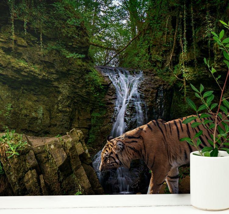 Uživajte u nevjerojatnom dizajnu Foto tapete šumski velikodušni tigar u šetnji koji će unijeti dašak divlje prirode u vaš prostor. Ova predivna tapeta prikazuje veličanstvenog tigra koji šeta kroz bujnu džunglu, okružen slapovima i drvećem koje odiše životom. Ovaj grafički prikaz prirode i divljih životinja stvara nevjerojatnu atmosferu koja će vas svakodnevno inspirirati i oduševljavati!