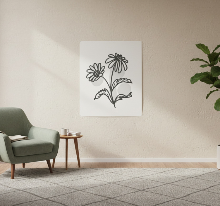 Poster dnevna soba linijski dizajn cvjetova tratinčica