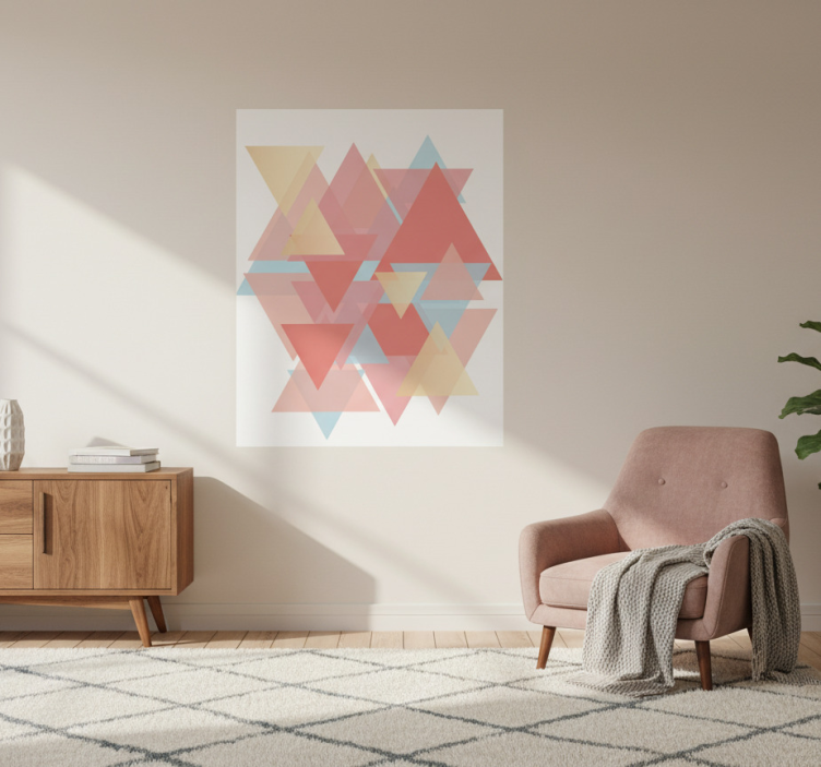 Poster dnevna soba ružičasti i zlatni trokuti