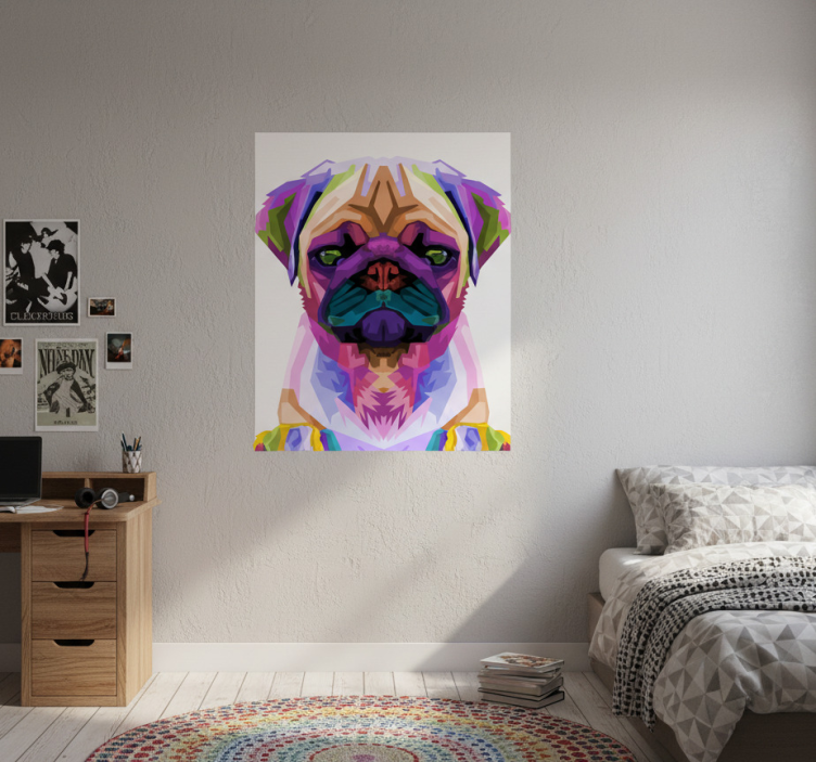 Naš Poster dnevna soba s pugom u pop art stilu nije samo dekorativni predmet, već i izvor inspiracije! Ovaj plakat savršeno će obogatiti vašu dnevnu sobu, dodajući joj dozu osobnosti i šarma. Zamislite kako će se vaši gosti diviti ovom zanimljivom komadu umjetnosti koji će unijeti veselje i kreativnost u svaku prostoriju. Dekoracija vašeg doma nikada nije bila jednostavnija i zabavnija!