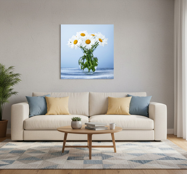 Svaki kutak vašeg doma zaslužuje da bude uređen s ljubavlju i pažnjom, a Poster dnevna soba tratinčice u staklenim posudama idealan je izbor za to! Ovaj prekrasan poster unosi prirodnu ljepotu u dnevnu sobu, stvarajući ugodnu i opuštajuću atmosferu. Inspirirajte se i dodajte dašak svježine u svoj interijer. Osim što će ukrasiti vaš prostor, ovaj poster će potaknuti razgovor i oduševiti vaše goste!