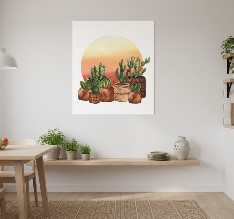 Poster kuhinja kaktus sa zalaskom sunca u krugu