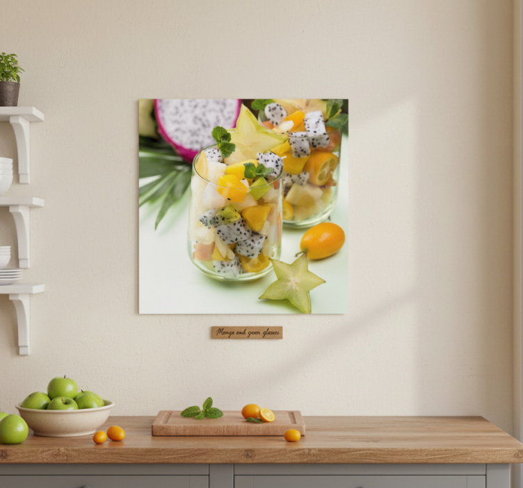 Ovaj poster kuhinja mango i zelene čaše savršeno je rješenje za sve one koji žele dodati dašak svježine i stil u svoj prostor. Njegov živopisan dizajn odmah privlači pažnju i stvara ugodnu atmosferu koja potiče kreativnost u kuhinji. Zamislite kako će vaša kuhinja izgledati s ovim prekrasnim posterom na zidu, donoseći osjećaj radosti i inspiracije svaki put kada uđete unutra!