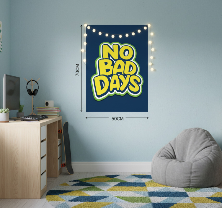 Primjena Plakat tinejdžerska soba poster tinejdžerska soba bez loših dana je jednostavna! Najbolja opcija je korištenje dvostrano ljepljive trake na poleđini postera. Također ga možete uokviriti ili koristiti kvačice i blu-tack za jednostavno postavljanje. Uživajte u brzoj i lakoj promjeni izgleda svoje sobe!