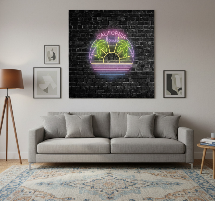 Poster zemlje i gradove s neonskim tekstom kalifornija plaža savršen je izbor za sve koji žele unijeti dašak svjetlosti i energije u svoj dom ili ured. Ovaj plakat ne samo da dodaje stil, već i inspirira svakog tko ga pogleda. Zamislite kako će oživjeti vašu dnevnu sobu ili radni prostor, stvarajući opuštajuću i kreativnu atmosferu koja potiče maštu i pozitivnu energiju. Idealno je rješenje za dekoraciju koje će vas podsjećati na sunčane dane i predivne plaže Kalifornije!