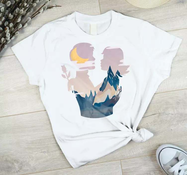 Ovaj dizajn ima oslikanu siluetu para koja je ispunjena šarenim planinskim krajolikom sjajnog izgleda.