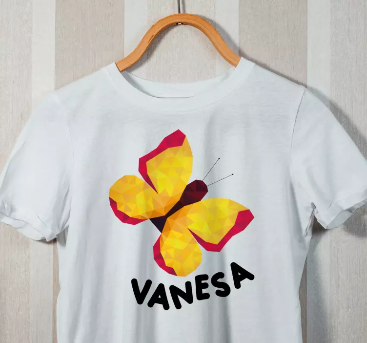 Referenca: T4993Ovaj šarmantni dizajn prikazuje živopisnu leptiricu s očaravajućom kombinacijom žutih i crvenih tonova. Geometrijski oblici dodaju moderni dodir, dok hrabro ispisano ime pojačava njegovu osobnu privlačnost. Savršeno za prikazivanje veselog i razigranog ugođaja.