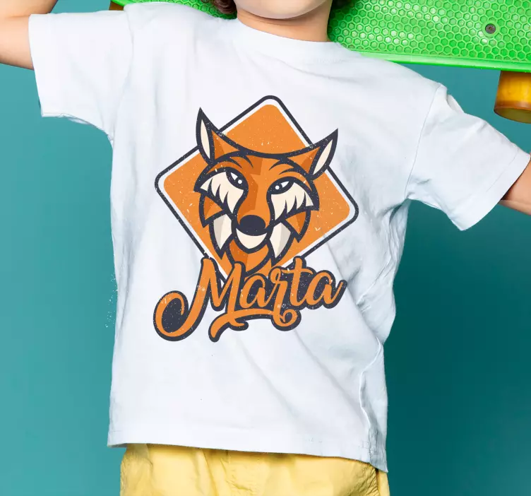 Referenca: T4980Ovaj fascinantan dizajn sadrži upečatljivu ilustraciju lisice s odvažnim bojama i razigranim elementima, personaliziranu s imenom 'Marta'. Savršeno za djecu, kombinira zabavu i kreativnost, čineći svaki komad jedinstvenim i posebnim.