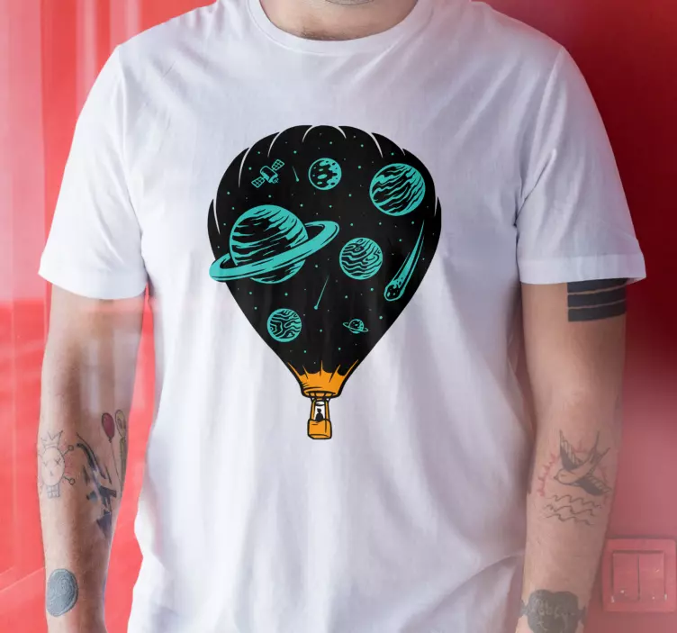 Uživajte u svemirskim avanturama s našim Majicama avantura kroz svemir! Ovaj jedinstveni dizajn obuhvaća šarene ilustracije balona na vrući zrak koji putuju kroz prostranstvo među planetama. Konceptualni pristup svemirskoj temi donosi kapricioznu i veselu atmosferu istraživanja, omogućujući vam da se osjećate kao pravi istraživač. Ove majice nisu samo odjeća, već i poziv na maštovita putovanja kroz svemir!