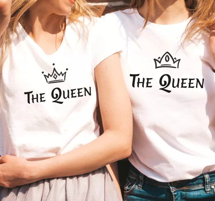 Referenca: T4073Ova slika prikazuje dirljiv trenutak između majke i kćeri, obje u usklađenim odjevnim kombinacijama koje ponosno ističu frazu 'The Queen.' Razigrani dizajn, naglašen krunama, simbolizira njihovu posebnu povezanost i zajedničke trenutke radosti.