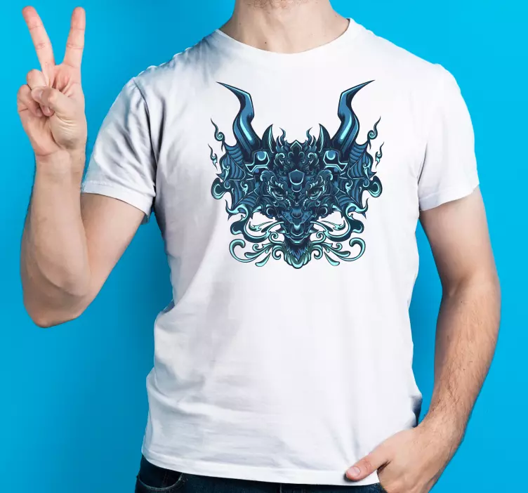 Upoznajte Majice oštra rogata stvorenja, savršeni spoj umjetničkog dizajna i mitskog stila! Ove majice krasi zmaj koji odiše strašnom japanskom estetikom, s rogovima i zloslutnim izrazom. Plava boja dodatno naglašava užas i ikoničnost ovog stvorenja, stvarajući efektan i upečatljiv vizualni dojam. S ovim jedinstvenim komadom odjeće postat ćete pravi magnet za poglede!