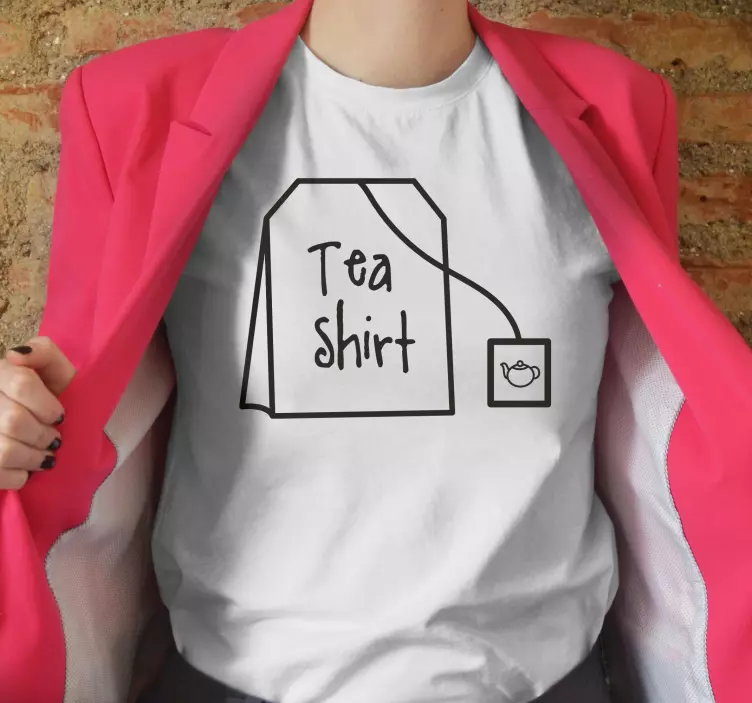 Referenca: T4909Ovaj zaigrani dizajn kombinira duhovitu ideju s ilustracijom vrećice čaja. Tekst duhovito glasi 'Tea shirt', što će se svidjeti ljubiteljima čaja. Minimalistički stil i monokromatska paleta dodatno pojačavaju njegov šarm, čineći ga savršenim izborom za ležerne izlaske ili posebne događaje.