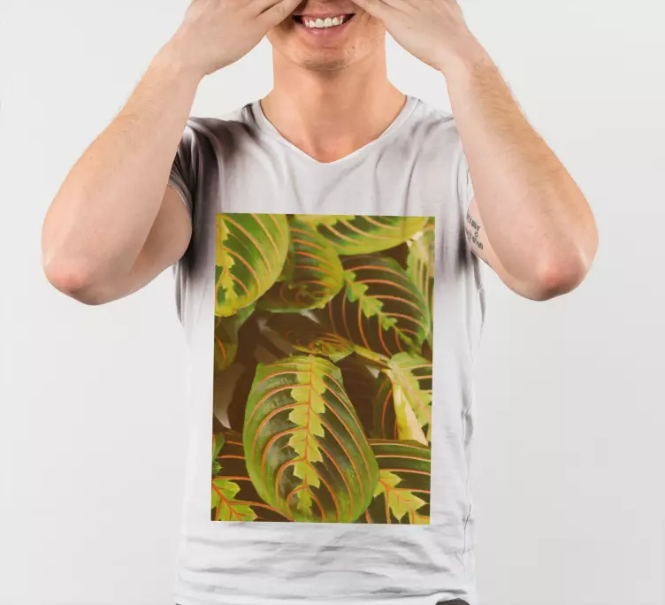 Uživajte u jedinstvenom stilu s našim Majicama s uzorkom zelenog lista, koje donose egzotičnu i svježu atmosferu u vašu garderobu! Ovaj grafički dizajn inspiriran je tropskom džunglom i botaničkim ljepotama prirode. Sa živopisnim ilustracijama marante i lišća, svaka majica je oslikana tako da dočara bogatstvo zelenila i teksture koje će vas očarati. Ova kolekcija donosi dašak prirode i svježine u svaki outfit!