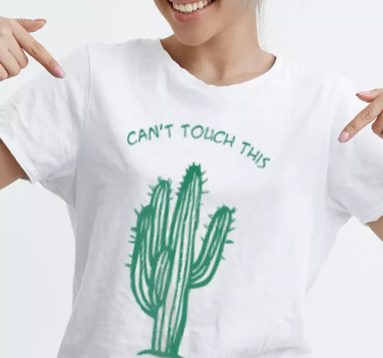 Smiješno ne može dodirnuti ovu dizajnersku dječju košulju. Smiješan dizajn koji je odličan zbog šale iz crtića. Proizvod ima motiv zelenog kaktusa s linijama i šiljcima.