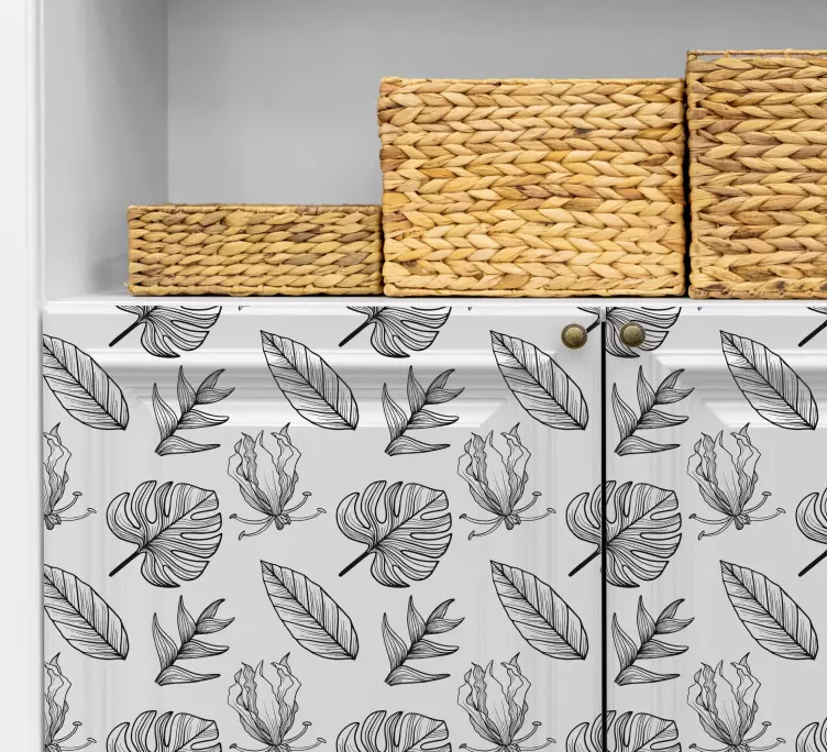Uživajte u prekrasnom dizajnu naše Biljne naljepnice s uzorcima listova, koja donosi tropski duh prirode u vaš dom! Ovaj grafički dizajn, s uzorcima lišća, cvjetnim motivima i kombinacijom crno-bijelih tonova, savršeno će obogatiti svaki prostor. Idealna za ljubitelje prirode i bilja, ova naljepnica unosi svježinu i eleganciju u vaš namještaj, stvarajući harmoniju između unutarnjeg i vanjskog svijeta.