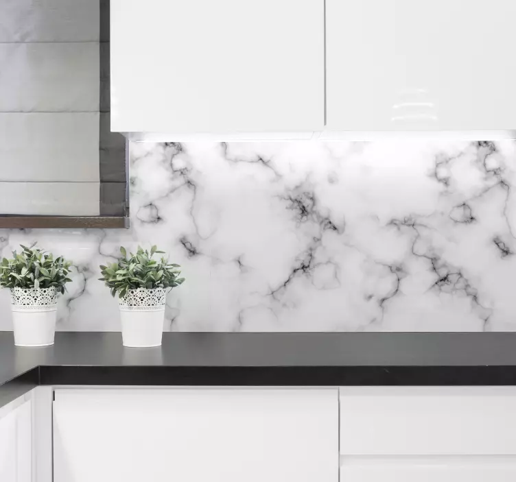 Šokirat ćete se kako je lako promijeniti izgled vaše kuhinje jednim jednostavnim ukrasnim elementom! Ova zidna naljepnica od bijelog mramora istovremeno je elegantna i izdržljiva, tako da možete biti sigurni da će dugo ugoditi vašim očima.