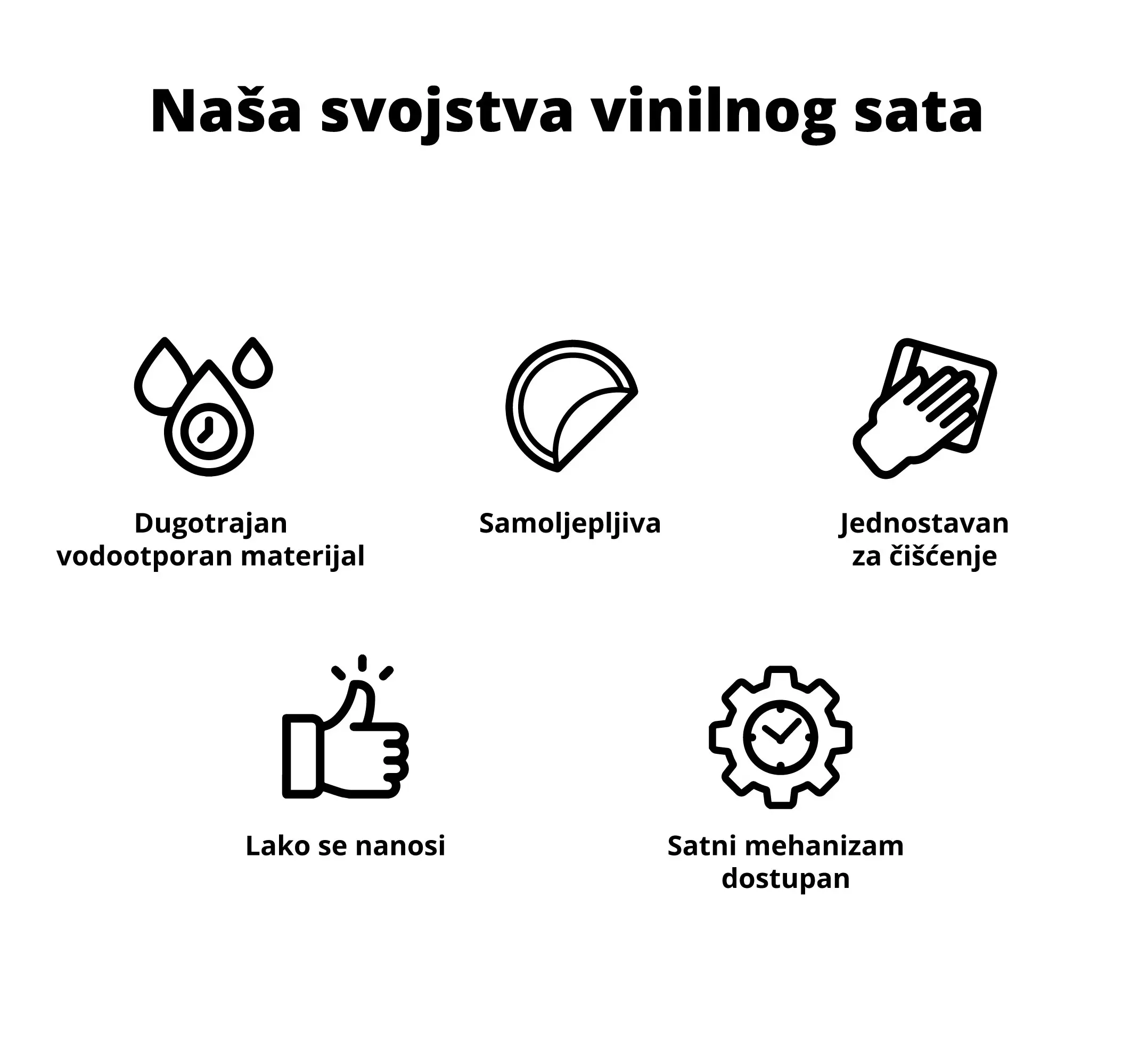 Ako želite mehanizam sata, na raspolaganju su vam i ovi uređaji! Što je jednostavnije za nanošenje, a nakon uklanjanja ne ostavlja ostatke, ovaj vinil dolazi s urađenim komadom sata i savršen je za bilo koju prostoriju u kući!