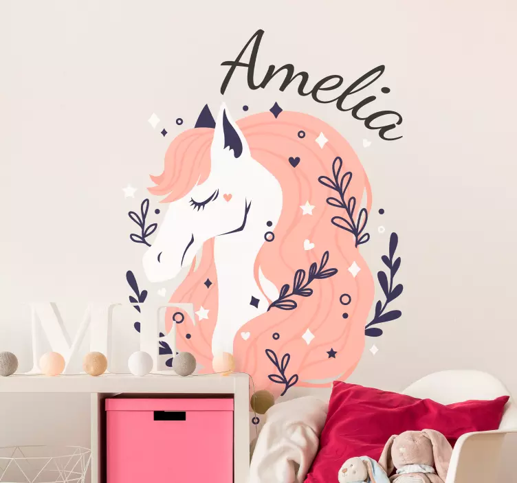 Ova naljepnica personalizirana ilustracija jednoruga donosi čaroliju i radost u svaki kutak dječje sobe. S njom možete obogatiti prostor s slatkim i kapricioznim dizajnom koji uključuje ime, prilagodljive elemente i nježnu paletu boja. Naša ilustracija prikazuje predivnog jednoroga okruženog cvjetnim motivima, čineći je savršenim izborom za ljubitelje konja i životinja. Ovaj proizvod ne samo da će uljepšati zidove, već će stvoriti i čarobnu atmosferu koja će oduševiti svakog malenog sanjara!