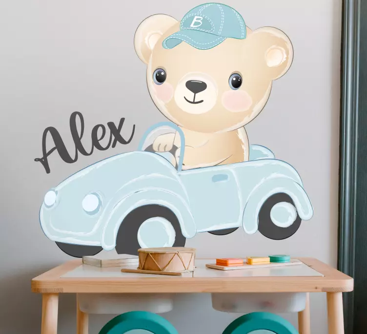 Referenca: A48719Šarmantna ilustracija prikazuje simpatičnog medvjeda u vintage vozilu, s kapom na glavi. Dizajn budi osjećaj zabave i avanture, privlačeći dječju maštu. Personalizirane opcije dodaju poseban dodir, čineći ovo divnim dodatkom svakom dječjem prostoru.