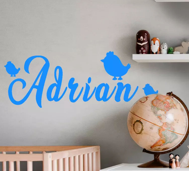 Naljepnica za djecu s personaliziranim imenom i pticama