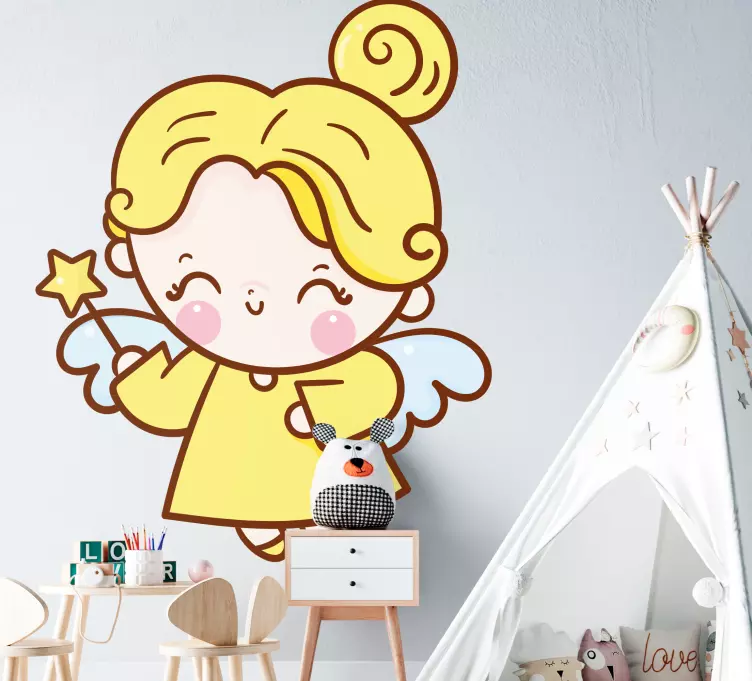 Naša naljepnica za djecu s simpatičnim anđelom donosi razigranost i čaroliju u svaki dječji kutak. Ovaj prekrasan dizajn obogaćen je živopisnom žutom bojom, a lik smiješećeg anđela s kapricioznim vilama na štapiću čini ga savršenim dodatkom za dječje sobe. Svojim razigranim izgledom, ova naljepnica će zasigurno oduševiti svako dijete!