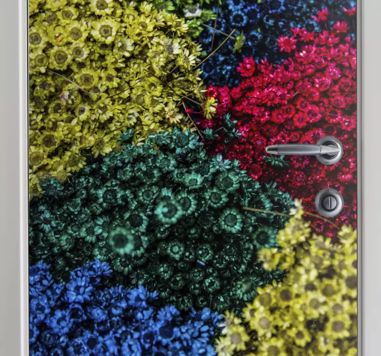 Uživajte u prekrasnom grafičkom dizajnu naše naljepnice za vrata s vibrantnim botaničkim motivima. Ova jedinstvena naljepnica donosi svijetle jarke boje i šarene cvjetne uzorke koji će osvježiti izgled vaših vrata. S temom prirode, ovaj cvjetni dizajn donosi kontrast boja koji će oduševiti svakoga tko prođe. Idealna je za sve ljubitelje cvijeća i prirode!