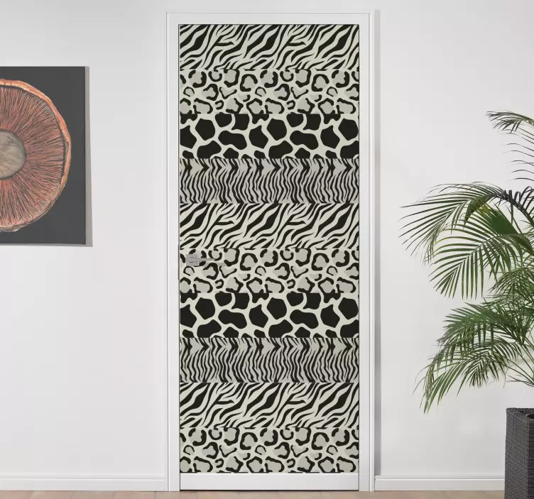 Ova naljepnica za vrata uzorak životinjskog printa savršeno kombinira grafički dizajn s modernim stilom. U crno-bijelom izdanju, uzorak leopard i zebra donosi dozu divlje elegancije na vaša vrata. Ova naljepnica ne samo da ukrašava, već i unosi dašak prirode u vaš prostor. Uživajte u životinjskim otiscima koji će privući poglede i obogatiti svaki interijer!