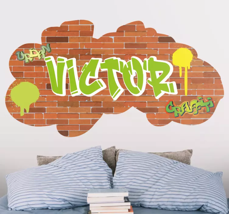 Referenca: A49593Živahna i prilagodljiva umjetnička djela koja sadrže ime u odvažnom grafitnom stilu na pozadini od opeke, ukrašena prskanjima boje. Idealno za dodavanje osobnog pečata svakom prostoru, ovaj dizajn poboljšava urbani estetski dojam dok omogućava individualno izražavanje.