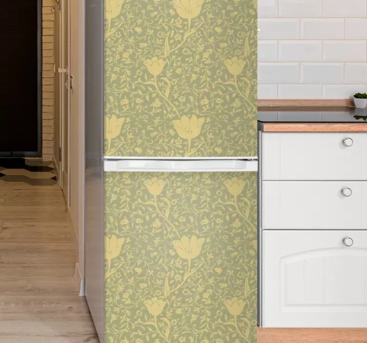 Uživajte u prekrasnim naljepnicama za hladnjak s cvjetnim uzorcima koje će unijeti dašak prirode i elegancije u vašu kuhinju! Ove naljepnice dolaze s zlatnim i zelenim cvjetnim uzorcima, a žuta boja dodatno obogaćuje njihov dizajn. Savršen izbor za ljubitelje prirode, ovi uzorci stvaraju harmoničan i topao ambijent, a istovremeno su i elegantni i moderni.
