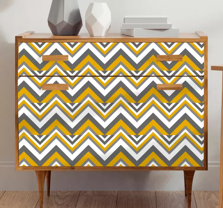 Uživajte u modernom dizajnu koji unosi svježinu u svaki prostor! Naše naljepnice za namještaj chevron uzorak donose geometrijski, cik-cak uzorak trokuta u prekrasnoj kombinaciji žute i sive boje. Ovaj nordijski stil savršeno se uklapa u svaki interijer, dodajući mu dašak elegancije i suvremenosti.