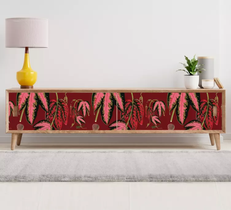 Uživajte u prekrasnom dizajnu našeg proizvoda – naljepnice za namještaj s motivom bujnog lišća. Ova jedinstvena ilustracija obogaćena je motivima marante, stvarajući cvjetni uzorak koji će unijeti dašak prirode u vaš dom. Živopisne boje poput crvene, zelene i ružičaste stvaraju savršen naglasak na namještaju, čineći ga neodoljivim i privlačnim.