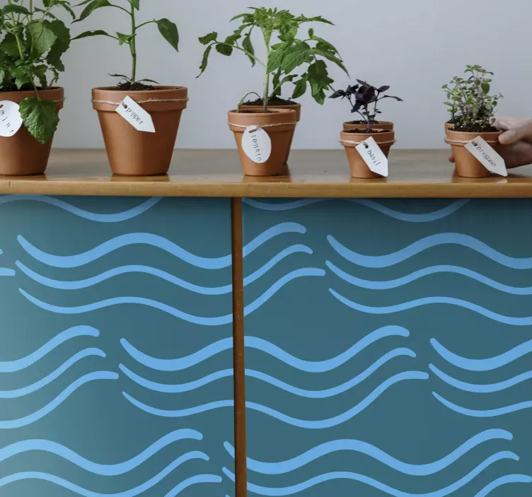 Uživajte u predivnom dizajnu naših naljepnica za namještaj s valovitim akvamarin uzorcima, koje donose valovite linije i plave tonove u svaki kutak vašeg doma. Ovaj uzorak, inspiriran prirodom, savršeno se uklapa s biljem i loncima, stvarajući harmoničnu atmosferu koja će obogatiti vašu prostoriju.