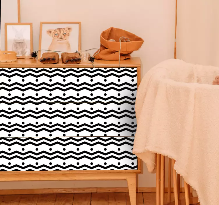 Naljepnice za namještaj u chevron uzorku donose moderni i stilski dizajn u vaš dom! Ovaj geometrijski uzorak u crno-bijeloj kombinaciji, s cik-cak linijama, savršeno će osvježiti svaki komad namještaja. Naša kolekcija nudi jedinstvene mogućnosti dekoracije koje će unijeti dašak sofisticiranosti i suvremenog stila u svaki kutak vašeg prostora.