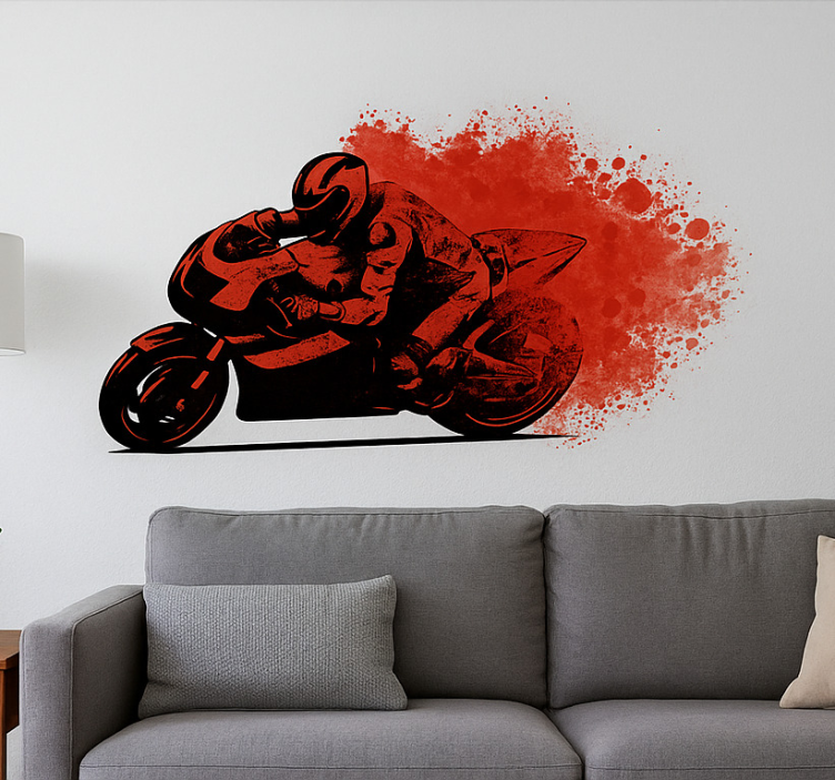 Referenca: A54121Dinamičan dizajn prikazuje motociklističkog trkača kako se naginje u oštrom zavoju, prenoseći brzinu i adrenalin. Odvažne mrlje u pozadini dodaju energičan dojam, naglašavajući pokret. Vizual hvata uzbuđenje motociklističkih trka, privlačeći entuzijaste i dodajući vibrantan dodir svakom prostoru.