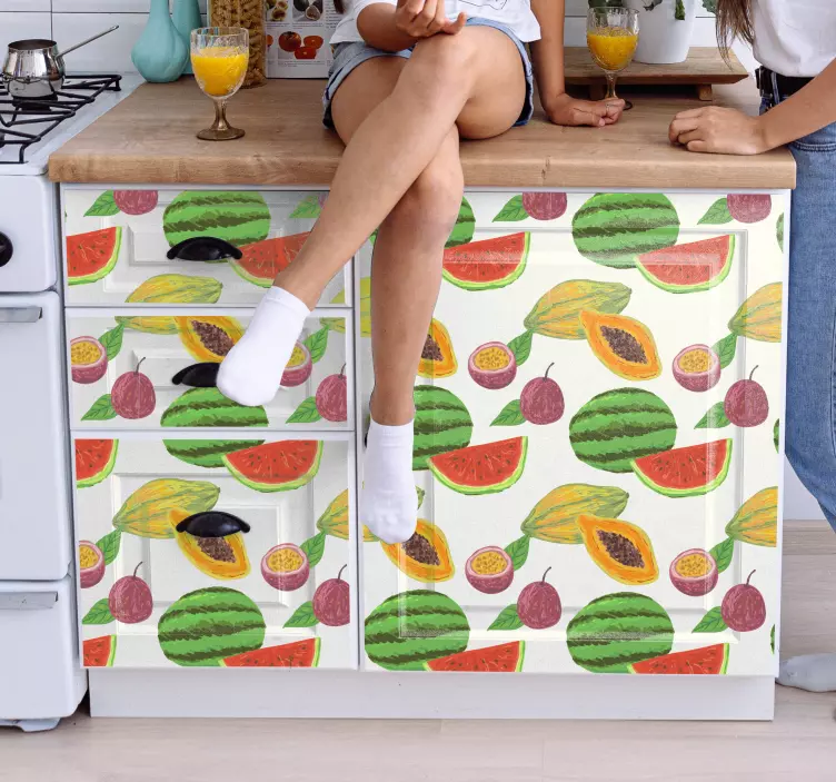 Referenca: A51355Živopisni aranžman raznog voća, uključujući "watermelon", "papaya" i "passionfruit", stvara privlačnu i veselu estetiku. Ovaj živahni prikaz poboljšava atmosferu svake kuhinje, čineći ga ugodno svježim dodatkom kućnim interijerima.
