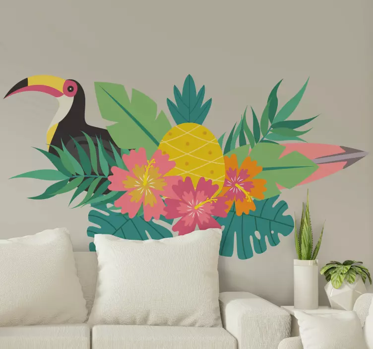 Otkrijte našu predivnu kolekciju naljepnica životinje s tropskim pticama koja donosi dašak egzotike u vaš dom! Ovaj šareni dizajn obogaćen tropskim lišćem, živopisnim pticama poput tukan i cvijećem, savršeno će osvježiti svaki prostor. Jarke boje ananasa i zelenila stvaraju veselu atmosferu koja će vas svaki put oduševiti. Ove naljepnice nisu samo lijep dekor, već i pravi umjetnički dodatak koji će privući pažnju svih koji uđu u vaš dom!