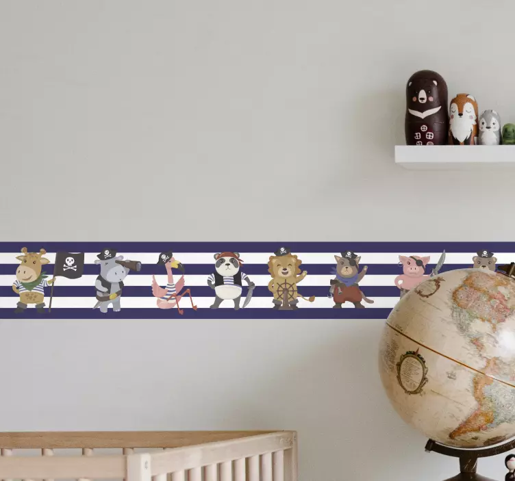 Referenca: A47219Živopisna kolekcija životinjskih likova s temom pirata prikazana u razigranim pozama. Svaka životinja nosi različite piratske dodatke, stvarajući divnu i avanturističku atmosferu savršenu za dječje prostore. Dizajn uključuje pruge, dodajući stilski pomorski element cjelokupnoj temi.