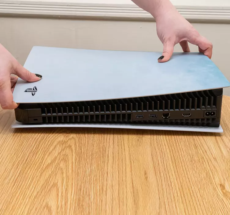 Postavljanje naše naljepnice za PlayStation 5 je jednostavno! Prvo, očistite površinu konzole, a zatim pažljivo poravnajte naljepnicu i pritisnite je na mjesto. Uživajte u novom izgledu svoje konzole!