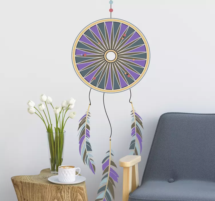 Uživajte u čaroliji našeg Ukrasna naljepnica koncept hvatača snova koja će unijeti dašak boemskog stila u vaš prostor! Ova predivna ilustracija hvatača snova u ljubičastoj boji, s nježnim perjem i geometrijskim oblicima, osigurava šareno i veselo uređenje koje će oduševiti svakog tko je vidi. Ova naljepnica je savršena za sve one koji žele dodati malo magije i kreativnosti u svoj dom!