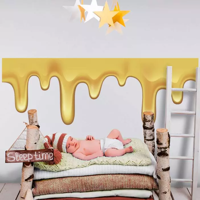 Referenca: A52008Elementi koji izgledaju kao zlatne kapljice stvaraju razigranu i privlačnu atmosferu, savršenu za dječje prostore. Glatka tekstura i živopisna boja privlače pažnju dok dodaju maštovit dodir okruženju. Idealno za oživljavanje maštovitih tema, potičući kreativnost u svakoj prostoriji.