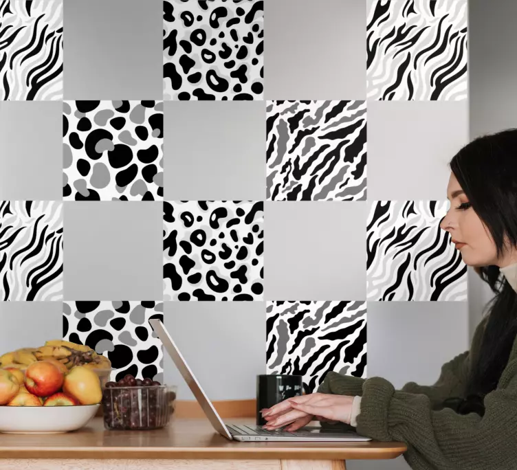 Uživajte u čaroliji modernog dizajna s našom ukrasnom naljepnicom s elegantnim uzorkovanim pločicama. Ova izvanredna naljepnica spaja geometrijske oblike s predivnim životinjskim otiscima leopard uzorka, čime donosi jedinstvenu teksturu i sofisticirani izgled u svaki prostor. Njena jednobojna pozadina omogućuje da uzorak dođe do izražaja, stvarajući savršen vizualni fokus koji će oduševiti svakog posjetitelja.