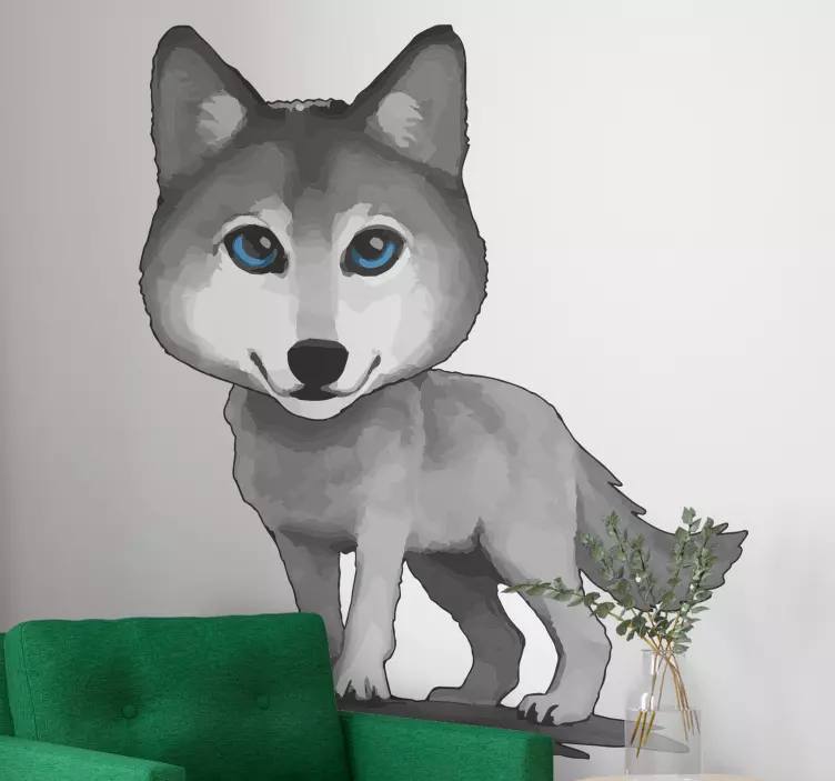 The wolf is depicted with blue eyes. It is durable and easy to apply to a flat surface. On our website, we also have other artistic stickers with wolf animations that you might like to check out. Our products are made of high-quality material and capable of withstanding external effects and wrinkles. Order an animal sticker from the jungle online so that we can have it delivered to your address in a few days and in perfect condition. You can customize the size to any suitable dimension.