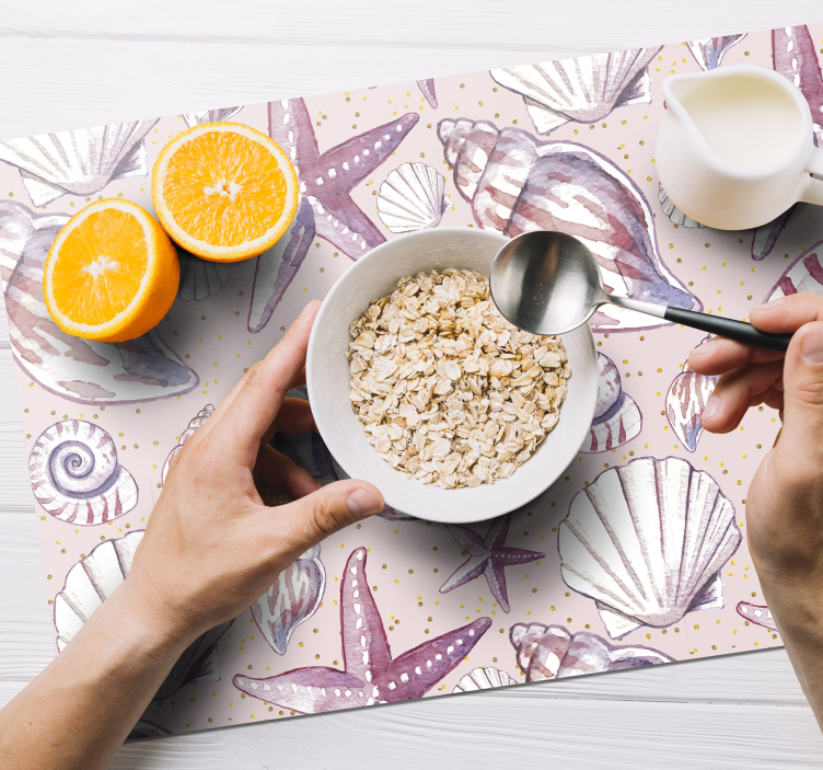 Uživajte u morskom ugođaju s našim Podmetačem tekstura uz uzorak školjke. Ovaj jedinstveni dizajn donosi u vašu kuhinju i blagovaonicu ljepotu oceana kroz nježne boje koje prikazuju školjke, morske zvijezde i prirodne elemente poput pijeska i morskog života. Osjećajte se kao da sjedite na plaži svaki put kada postavite stol!