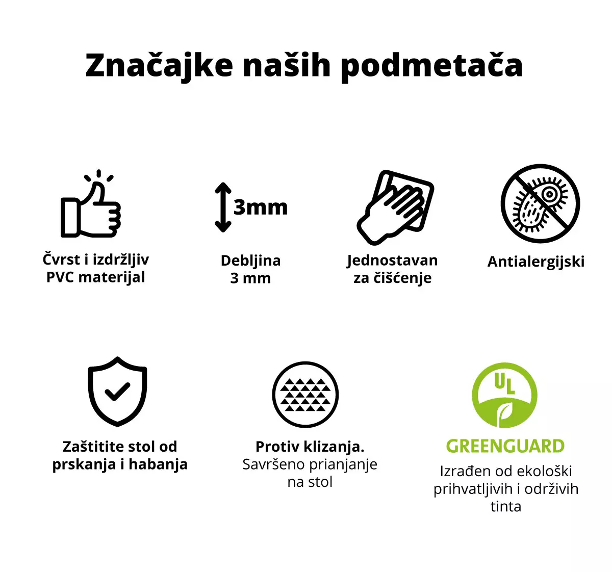 Zahvaljujući visokokvalitetnim materijalima koje koristimo, ovi originalni podmetači od vinila lako se čiste i štite vas namještaj od mrlja i izljeva koji bi se mogli istodobno doimati prekrasno.