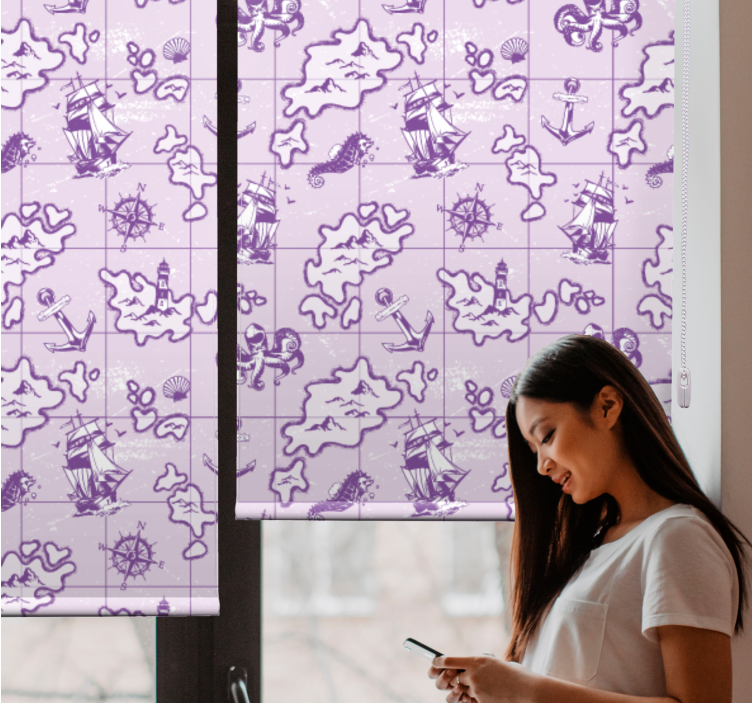 Ljubičasta gusarska karta Rolo zavjese umjetnost
