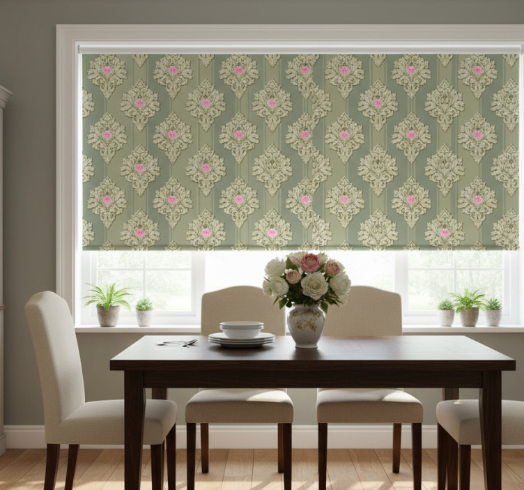 Rolo zavjese blagovaonica s vintage uzorkom u zelenoj boji
